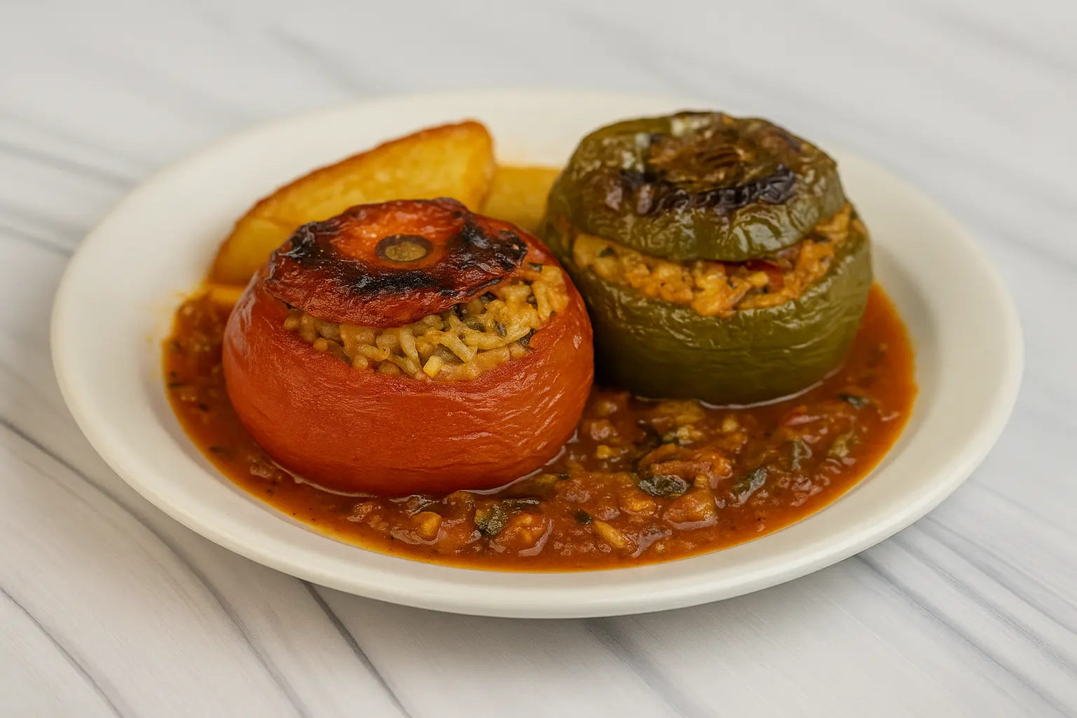 Oven-baked vegetables stuffed with herbed rice and vegetables